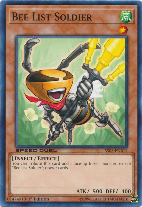 You can Tribute this card and 1 face-up Insect monster, except "Bee List Soldier", draw 2 cards.