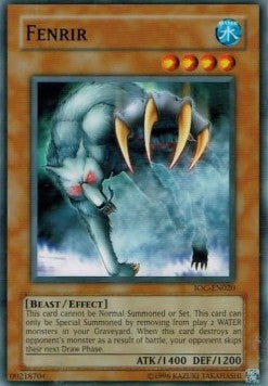 This card can only be Special Summoned by removing 2 WATER monsters in your Graveyard from play. When this card destroys an opponent's monster as a result of battle, your opponent skips his/her next Draw Phase.
