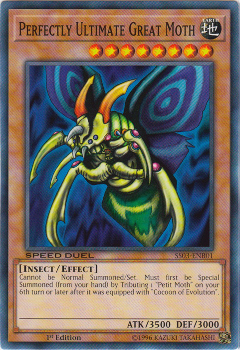 Cannot be Normal Summoned/Set. Must first be Special Summoned (from your hand) by Tributing 1 "Petit Moth" on your 6th turn or later after it was equipped with "Cocoon of Evolution".