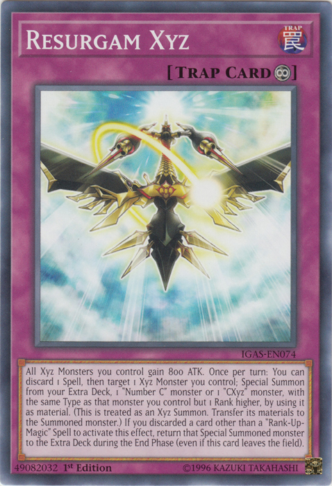 All Xyz Monsters you control gain 800 ATK. Once per turn: You can discard 1 Spell, then target 1 Xyz Monster you control; Special Summon from your Extra Deck, 1 "Number C" monster or 1 "CXyz" monster, with the same Type as that monster you control but 1 Rank higher, by using it as material. (This is treated as an Xyz Summon. Transfer its materials to the Summoned monster.) If you discarded a card other than a "Rank-Up-Magic" Spell to activate this effect, return that Special Summoned monster to the Extra Deck during the End Phase (even if this card leaves the field).