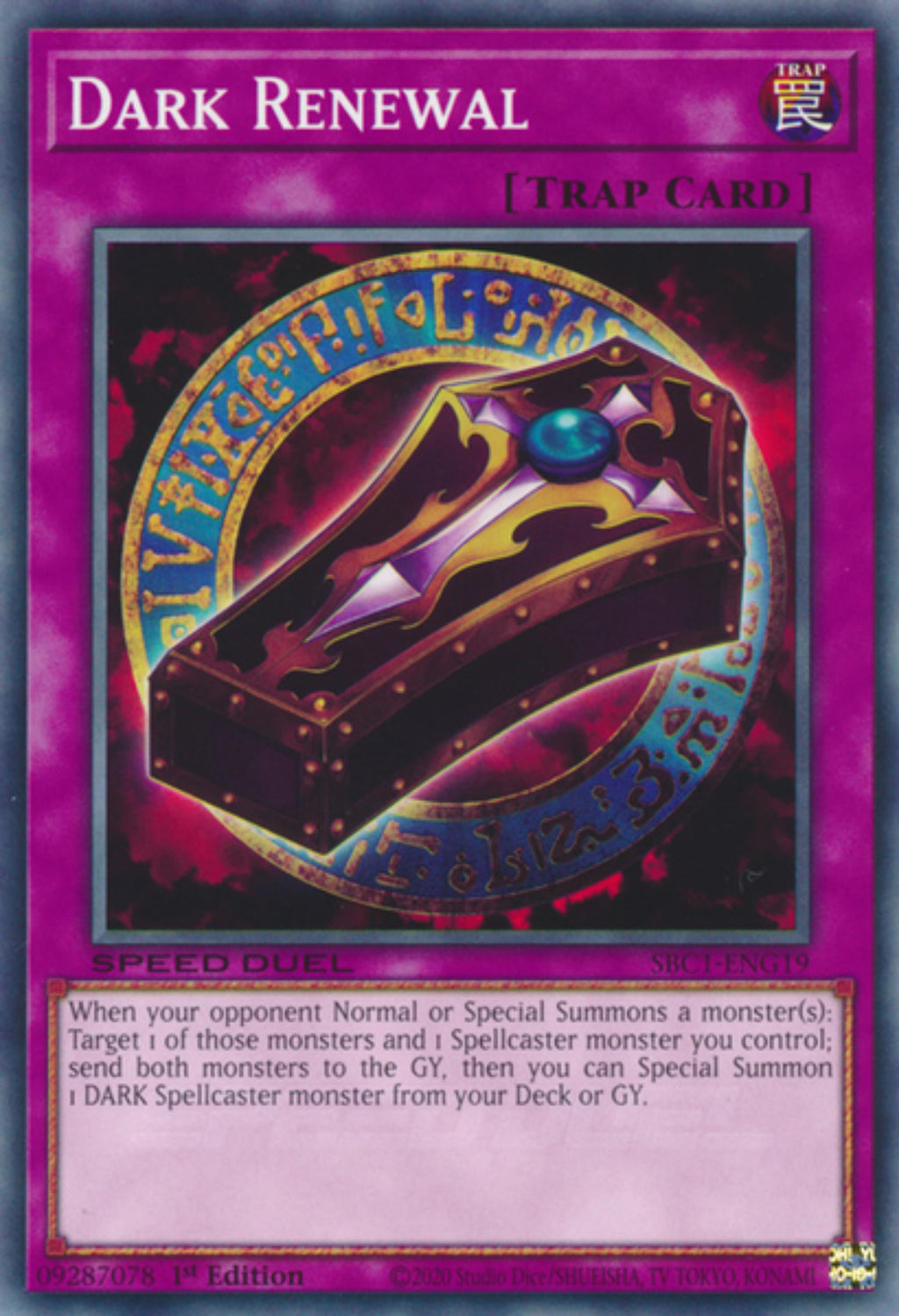 When an opponent's monster declares an attack: Roll a six-sided die and apply the result. 1: Halve your LP. 2: Make that attack a direct attack. 3: Choose 1 monster you control, change the attack target to it, and perform damage calculation. 4: Choose 1 other monster your opponent controls, change the attack target to it, and perform damage calculation. 5: Negate the attack, and if you do, inflict damage to your opponent equal to that monster's ATK. 6: Destroy that opponent's monster.