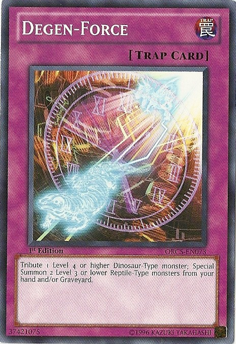 Tribute 1 Level 4 or higher Dinosaur-Type monster; Special Summon 2 Level 3 or lower Reptile-Type monsters from your hand/or Graveyard.