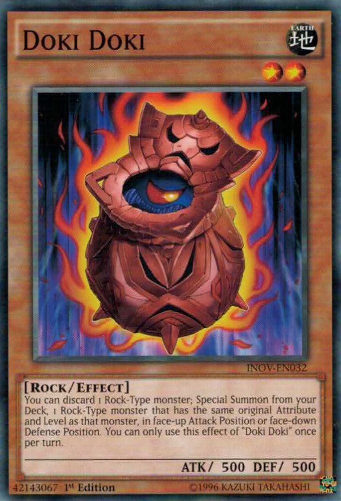 You can discard 1 Rock-Type monster; Special Summon from your Deck, 1 Rock-Type monster that has the same original Attribute and Level as that monster, in face-up Attack Position or face-down Defense Position. You can only use this effect of "Doki Doki" once per turn.