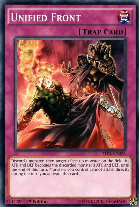 Discard 1 monster, then target 1 face-up monster on the field; its ATK and DEF becomes the discarded monster's ATK and DEF, until the end of this turn. Monsters you control cannot attack directly during the turn you activate this card.